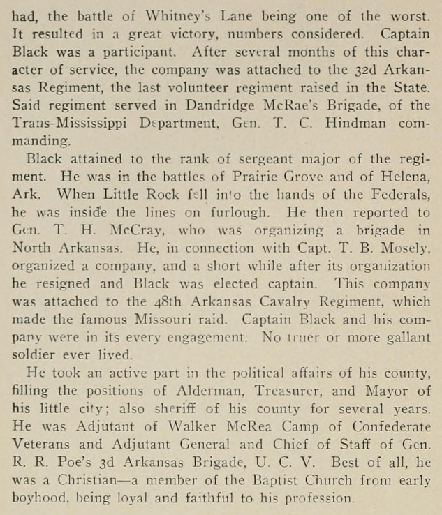 " Genealogy - Benjamin Clayton Black - John McCauley - R. G. Shaver - Will Hicks - T. H. McCray - T. B. Mosely - 32d Arkansas Regiment - 48th Arkansas Cavalry - Whitney's Lane - Prairie Grove, Arkansas - Helena, Arkansas