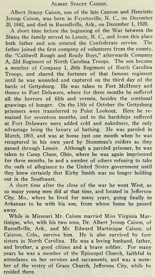 " Genealogy - Albert Stacey Caison - Virginia Martinique - Cannon Caison - Kirby Smith - Fayetteville, North Carolina - Jefferson City, Missouri - 26th Regiment of North Carolina Troops