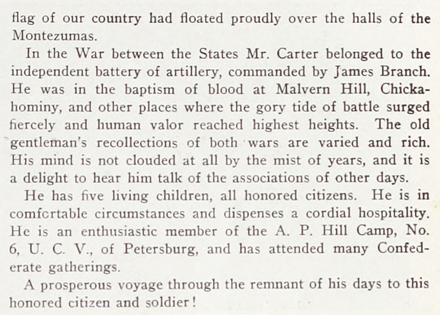 " Genealogy - Joseph L. Carter - R. W. Grizzard - 1st Virginia Regiment - James Branch - Malvern Hill, Virginia - Petersburg, Virginia