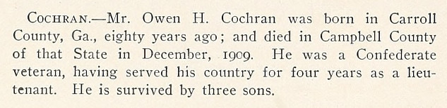 " Genealogy - Owen H. Cochran - Carroll County, Georgia - Campbell County, Georgia