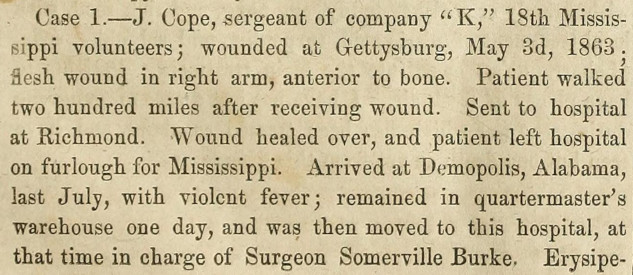Medical Treatment of J. Cope, 18th Mississippi Volunteers.