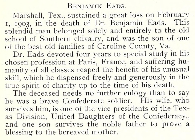 " Genealogy - Benjamin Eads - Caroline County, Virginia - Marshall, Texas - Paris, France