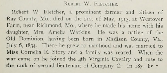 Obituary of Robert W. Fletcher, Richmond, Missouri.