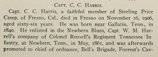 Obituary of C. C. Harris, Fresno, California.