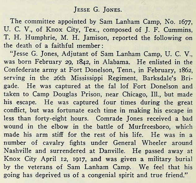 Obituary of Jesse G. Jones, Knox City, Texas.