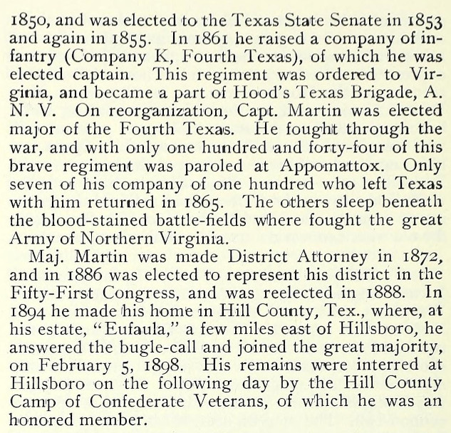 " Genealogy - William Harrison Martin - 4th Texas Infantry - Twiggs County, Georgia - Troy, Alabama - Hill County, Texas - Hillsboro, Texas