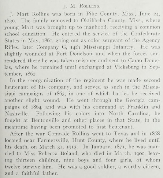 Obituary of J. Mart Rollins, Farmersville, Texas.