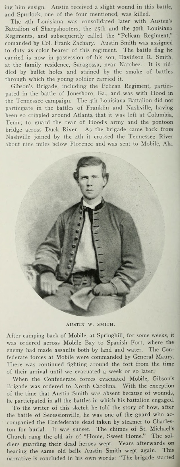 Service of Austin Williams Smith, from Natchez, Mississippi, 4th Louisiana Battalion.