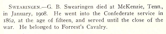 " Genealogy - G. B. Swearingen - Forrest's Tennessee Cavalry - McKenzie, Tennessee